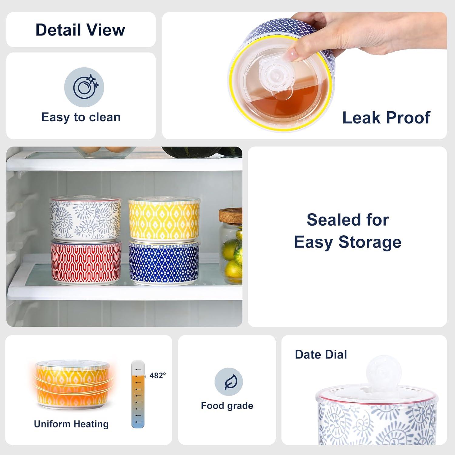 EFFICIENT STACKABILITY, SPACE-SAVING – These ceramic storage containers have smaller diameter and larger height which mean them take up less space in fridge than the plastic containers. The included covers make these storage bowls stacked well in the fridge or in your lunch bag/box to save space.