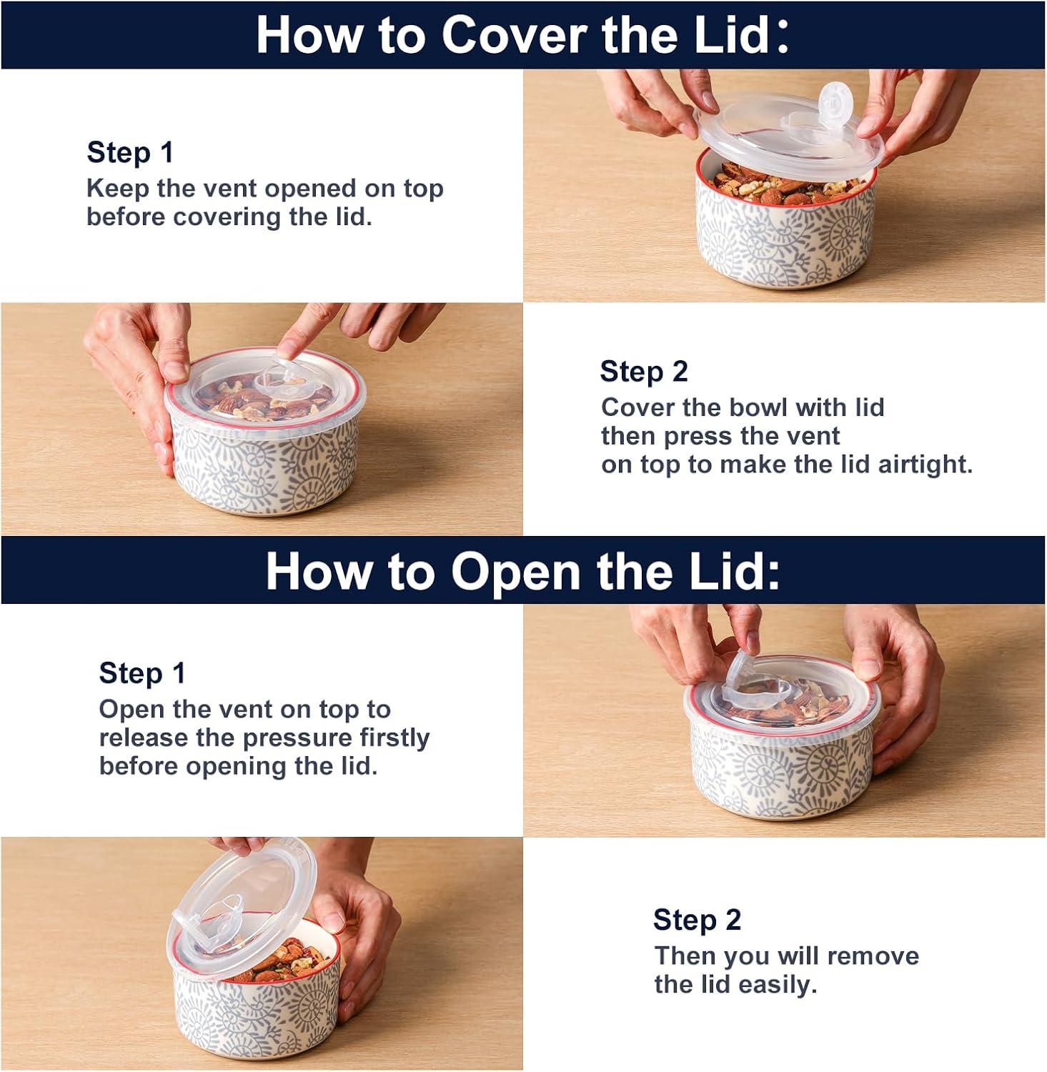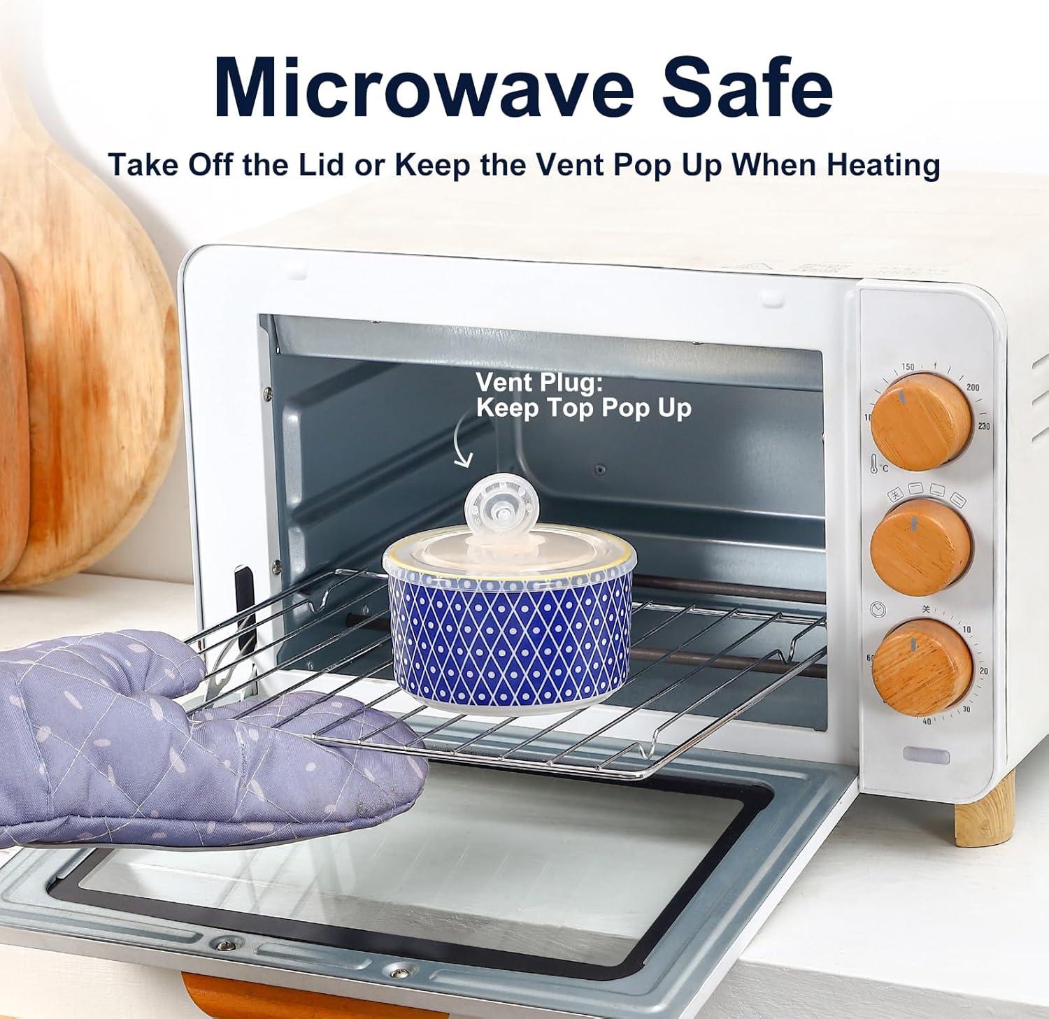 STURDY & SAFE MATERIALS – Crafted from high-quality ceramic, these microwavable bowls with lids are built to last. The unleaded glaze provides you with a worry-free healthy life. It's safe for use in the microwave, oven, and dishwasher, making cleanup a breeze.