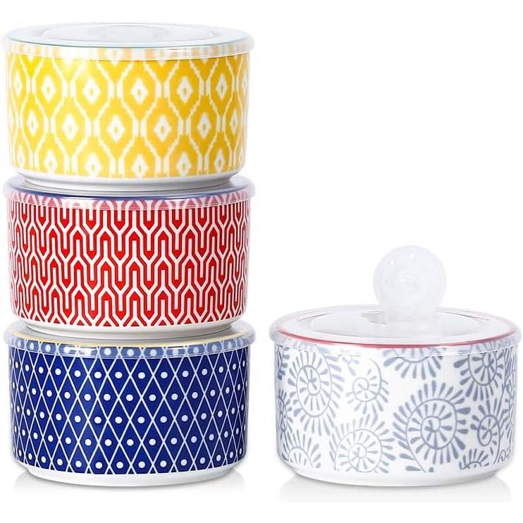 EXQUISITE DESIGN & GORGEOUS PRESENT – Each small serving bowl with lid has a different design in vibrant color that brings a cheerful vibe to our dining times. These beautiful ceramic bowls are both home decoration and kitchen essentials. Whether for personal use or as a present to friends or family, it is an ideal present, suitable as a Housewarming, Birthday, Wedding parties present.