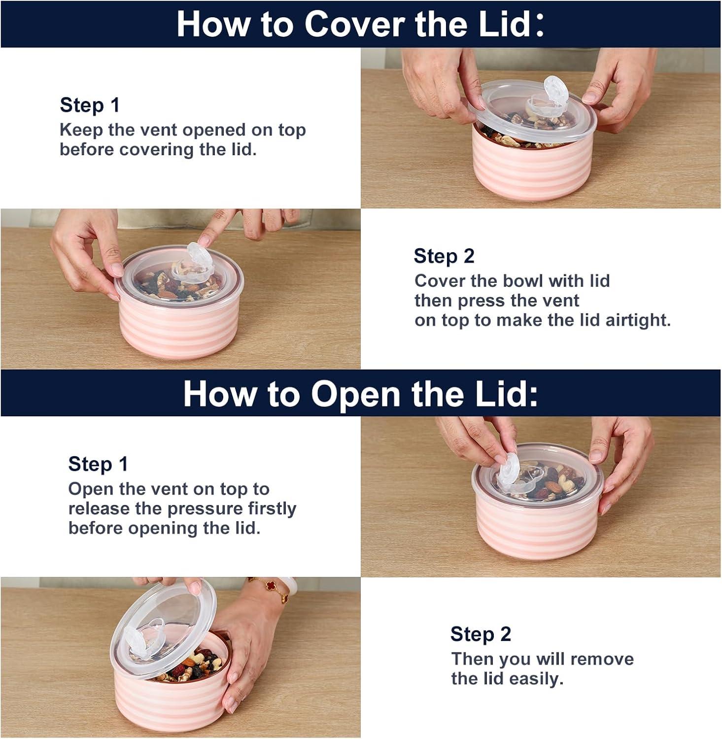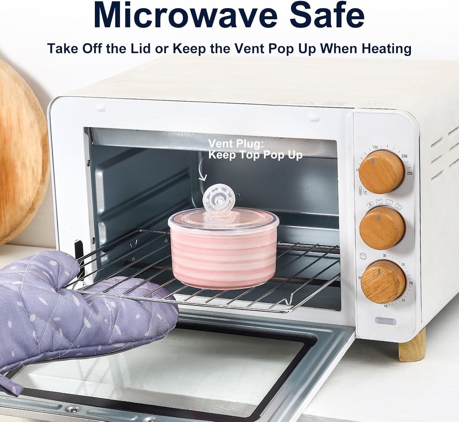 STURDY & SAFE MATERIALS – Crafted from high-quality ceramic, these microwavable bowls with lids are built to last. The unleaded glaze provides you with a worry-free healthy life. It's safe for use in the microwave, oven, and dishwasher, making cleanup a breeze.