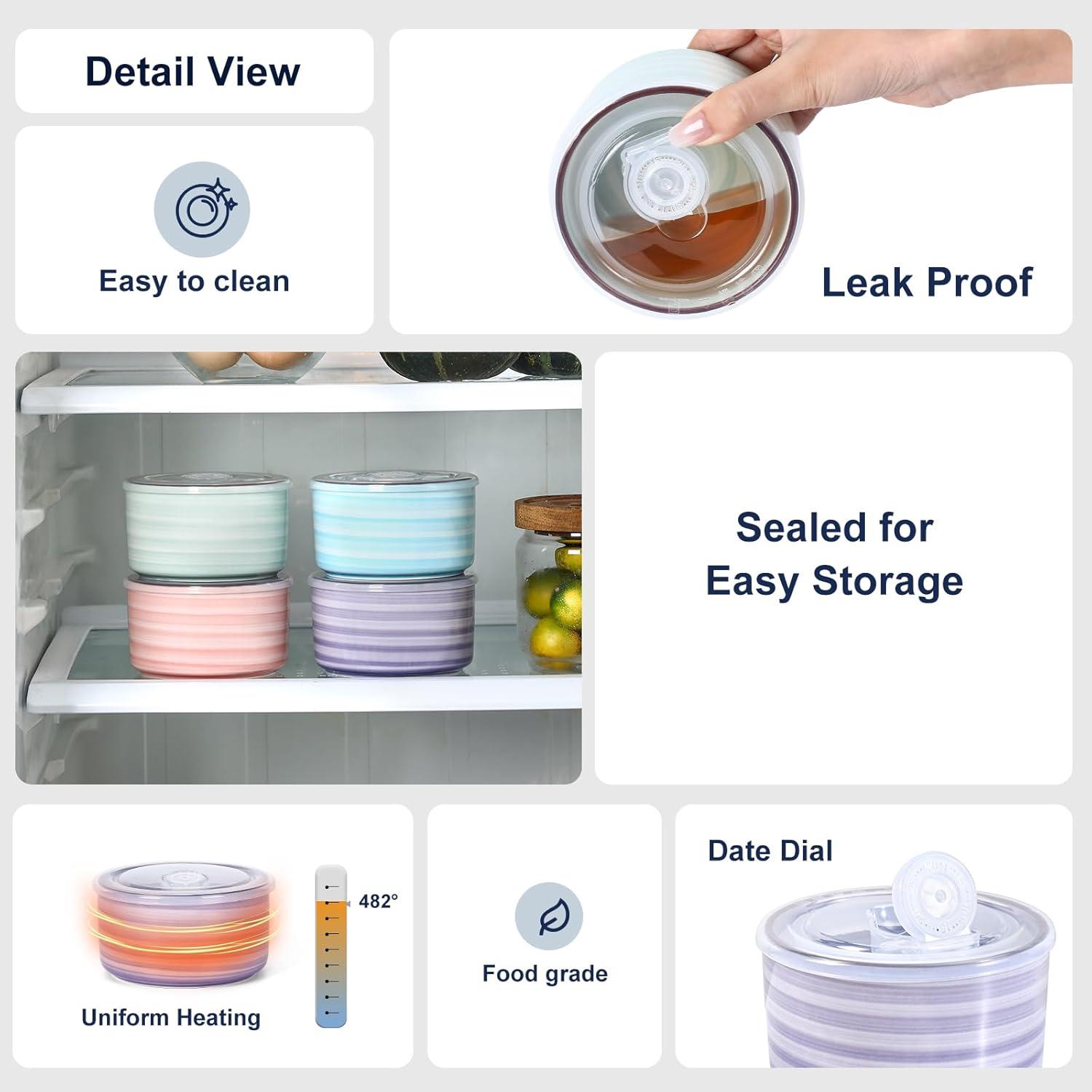 EFFICIENT STACKABILITY, SPACE-SAVING – These ceramic storage containers have smaller diameter and larger height which mean them take up less space in fridge than the plastic containers. The included covers make these storage bowls stacked well in the fridge or in your lunch bag/box to save space.