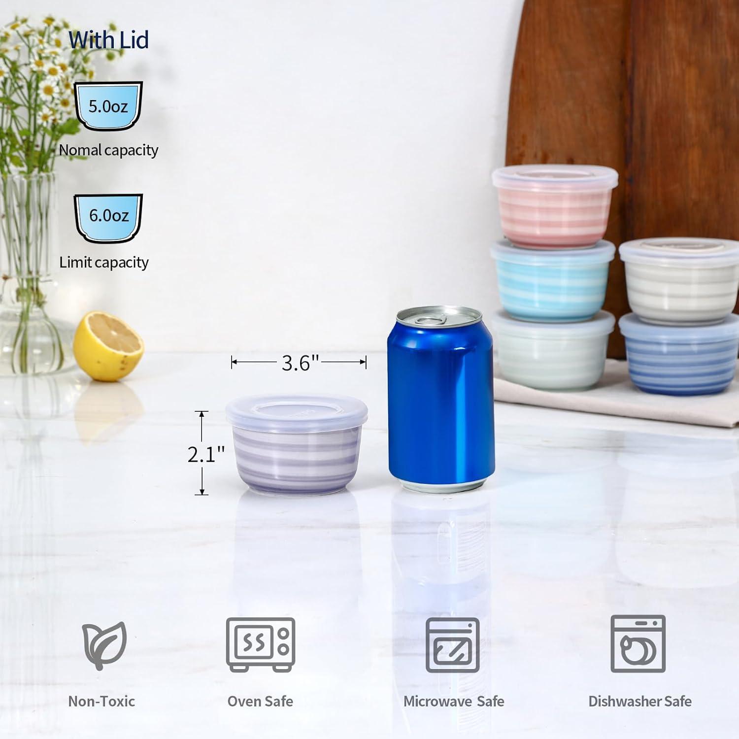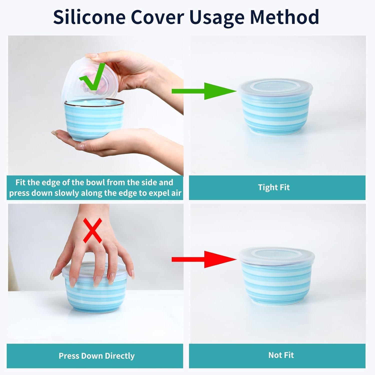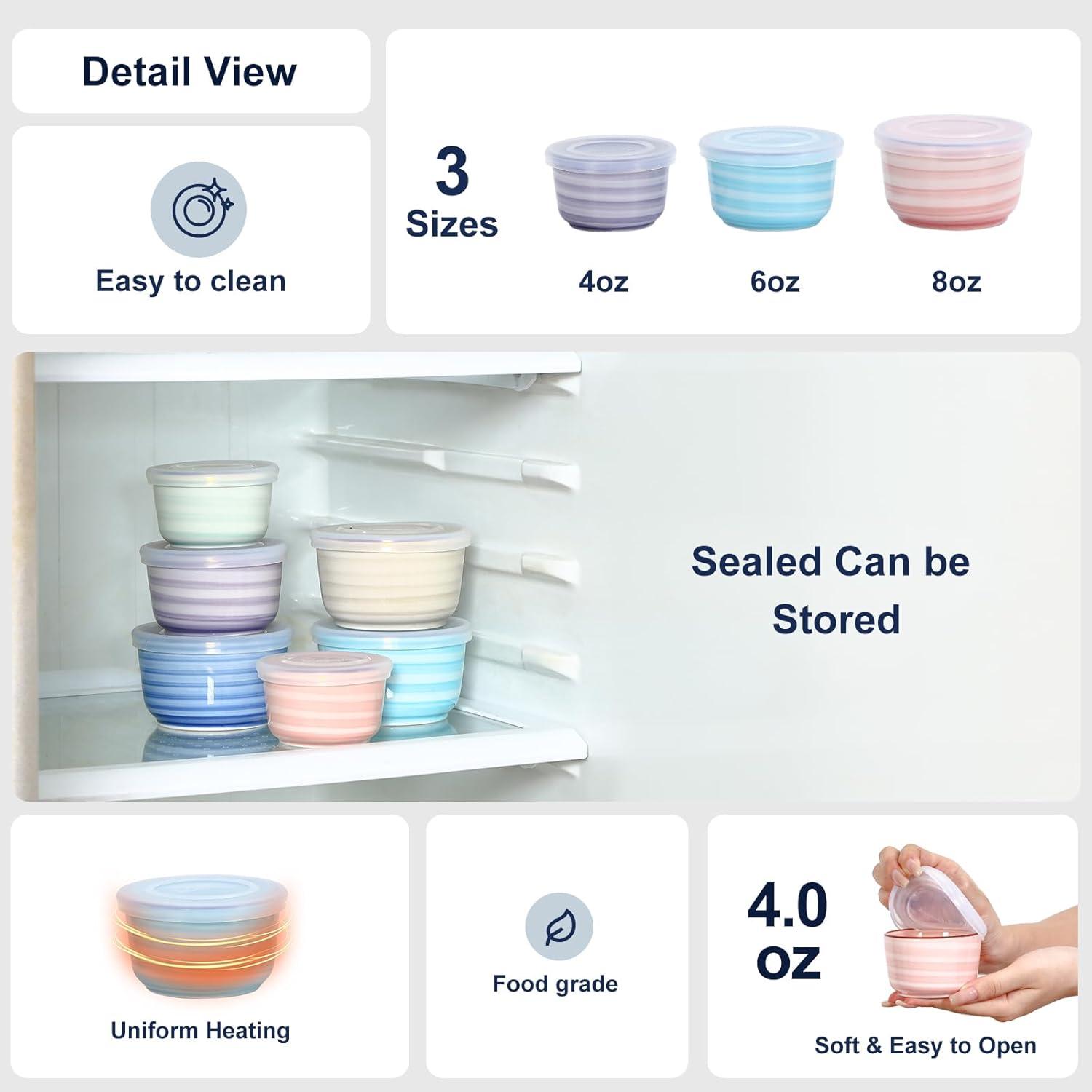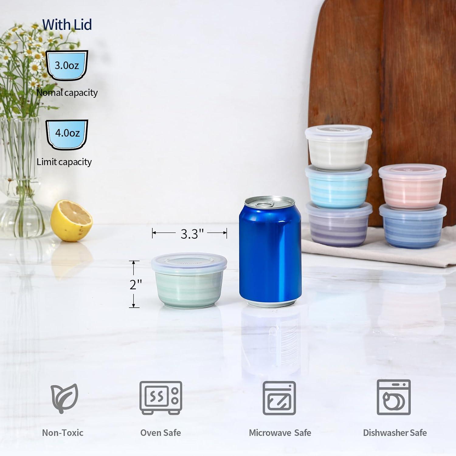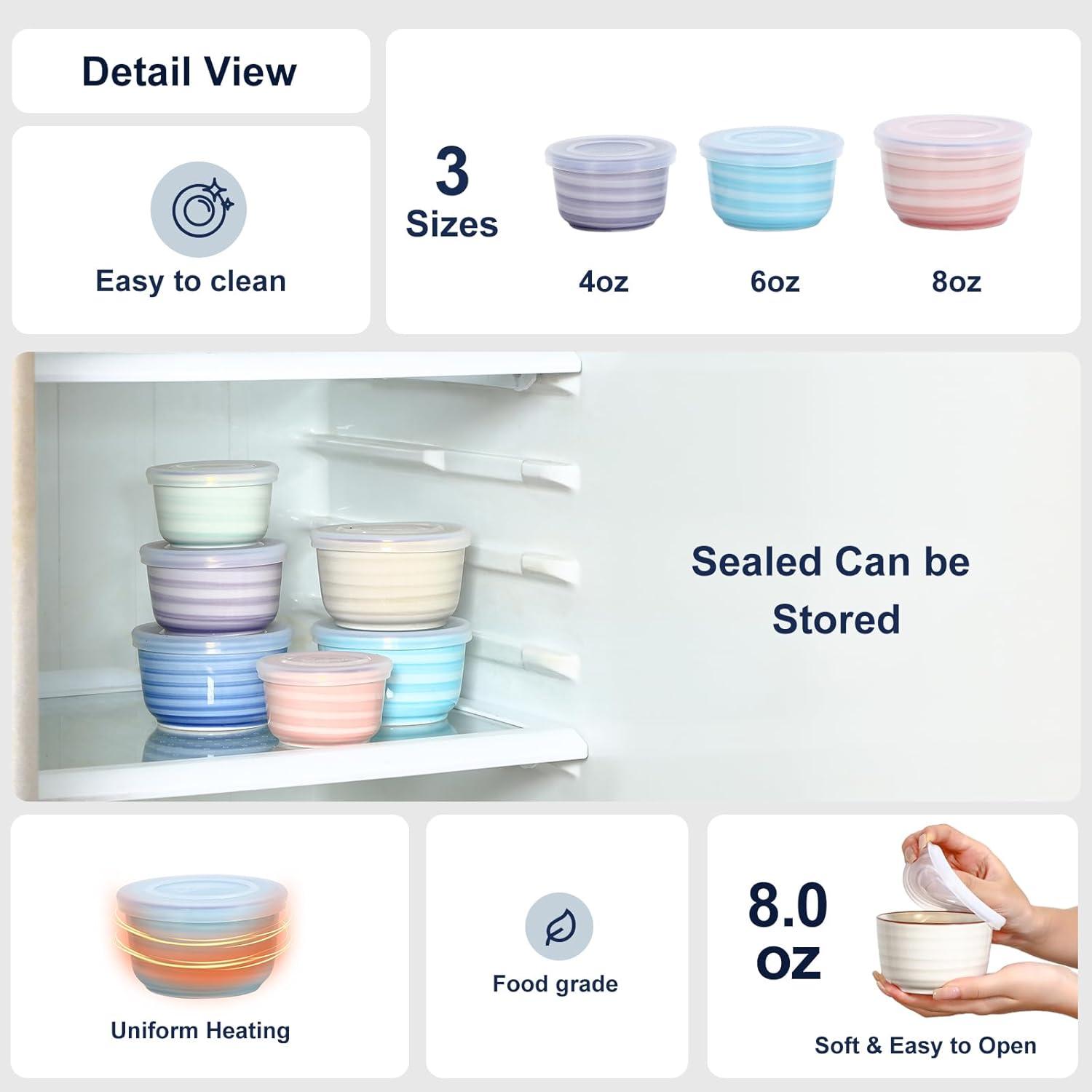 SECURE & AIRTIGHT LIDS – These food-grade silicone lids help your food stay warm and keep fresh as well as a wonderful addition for leftovers, condiment and sauce. The lids fit the rim of these Ramekins perfectly and seal well, great for storing food in the fridge or carrying in a lunchbox without odor spillage or leakage worries.