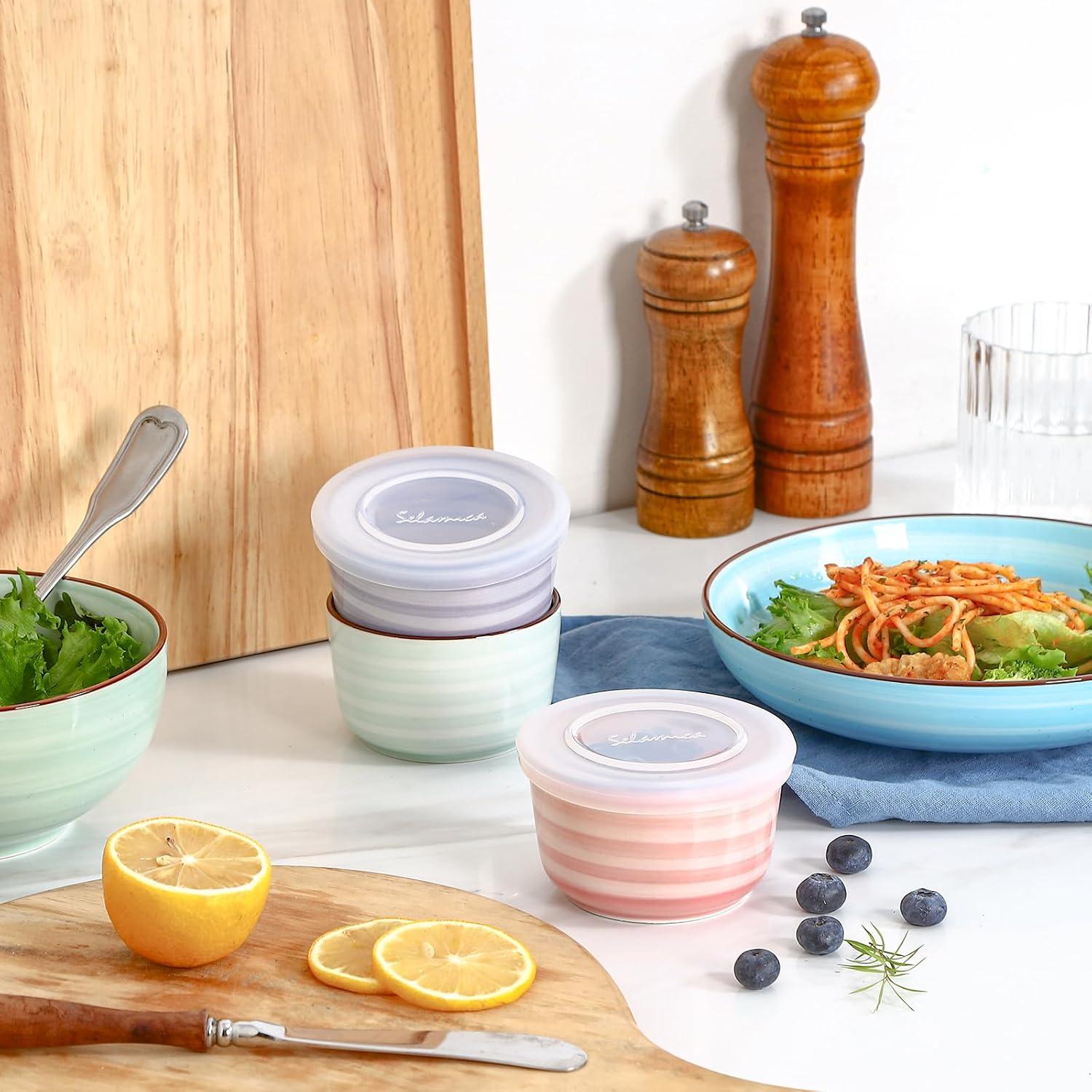 Selamica Ramekins with Lids 8 oz, Creme Brulee Ramekins Oven Safe, Souffle Dishes Porcelain Custard Cups for Baking, Small Bowls for Dipping, Pudding, Ice Cream, Set of 6, Gradient Color(Gradient Color)